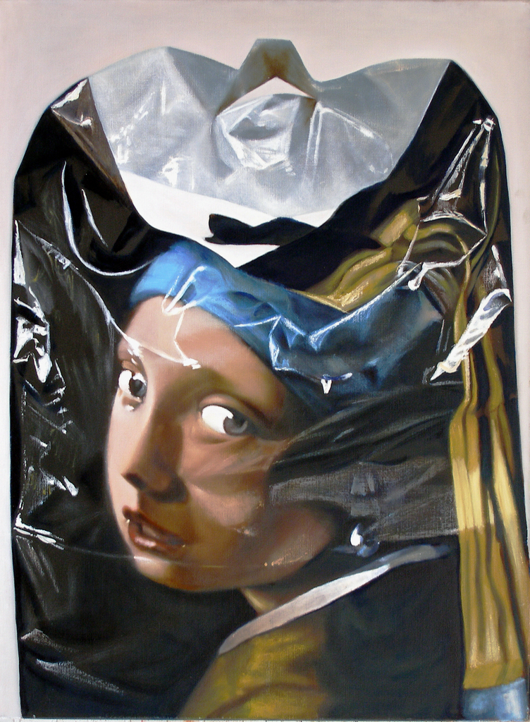 Figuratie Groen Vrouw Portret Man Art Media Woman Kunst Oilpainting Portrait Olieverfschilderij Green Vervreemding Realisme Realism Bag Vermeer Paint Communicatie People Zak Interieur Persoon Conceptueel