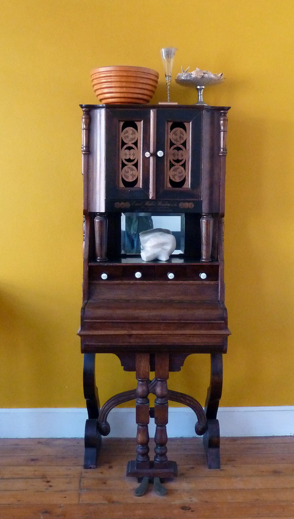 Letterlijk 'Art trouvee'. Gered van de brandstapel. De onderdelen van piano en orgel lagen al klaar om te gaan fikken. Gelukkig hebben wij er nu nog dagelijks plezier van en staat ons niet in de weg.