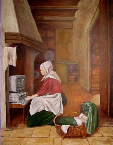 Een schilderij gemaakt voor de tentoonstelling van Scholen in de Kunst in Amersfoort. Het thema was De Gouden Eeuw geconverteerd naar onze tijd.