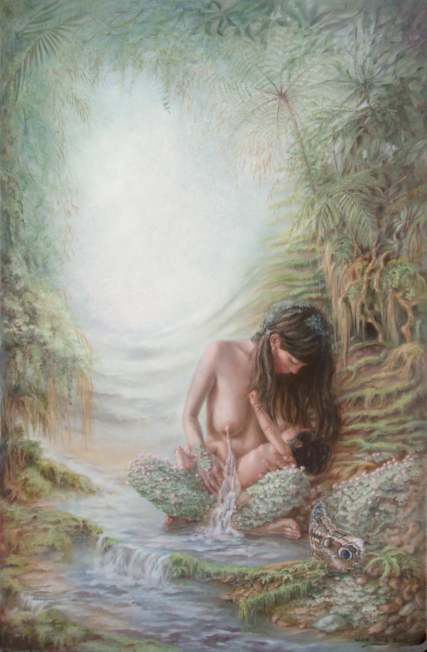Zogende mosvrouw trancendeert de eenheid van moeder en kind. Van het origineel is een hoogwaardige Giclée te bestellen voor E400,-.