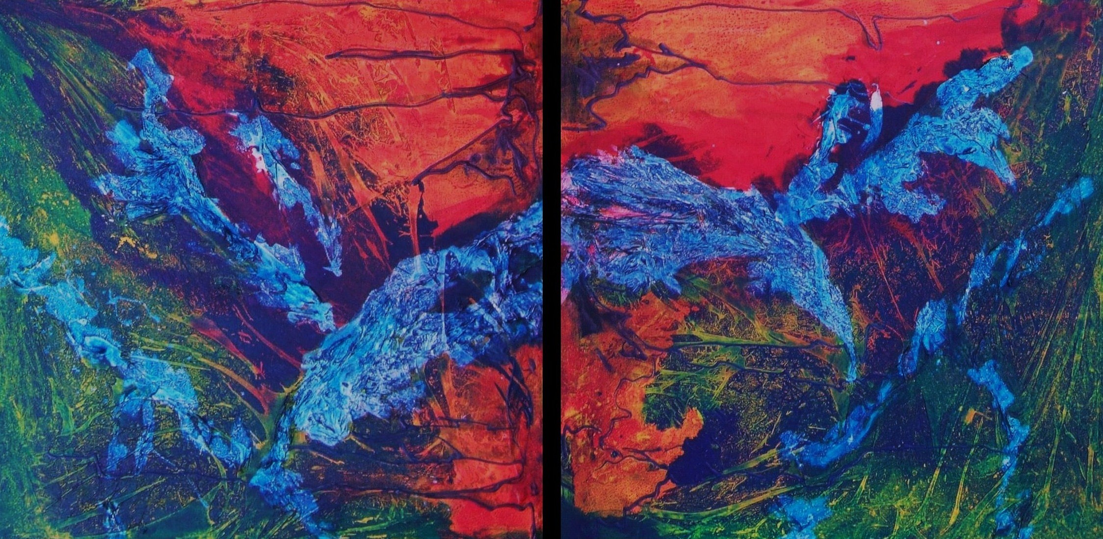 Abstract tweeluik, 'in de geest van ...'. Het werk is geselecteerd voor de voorronde van 'het vierkante ei 2009'