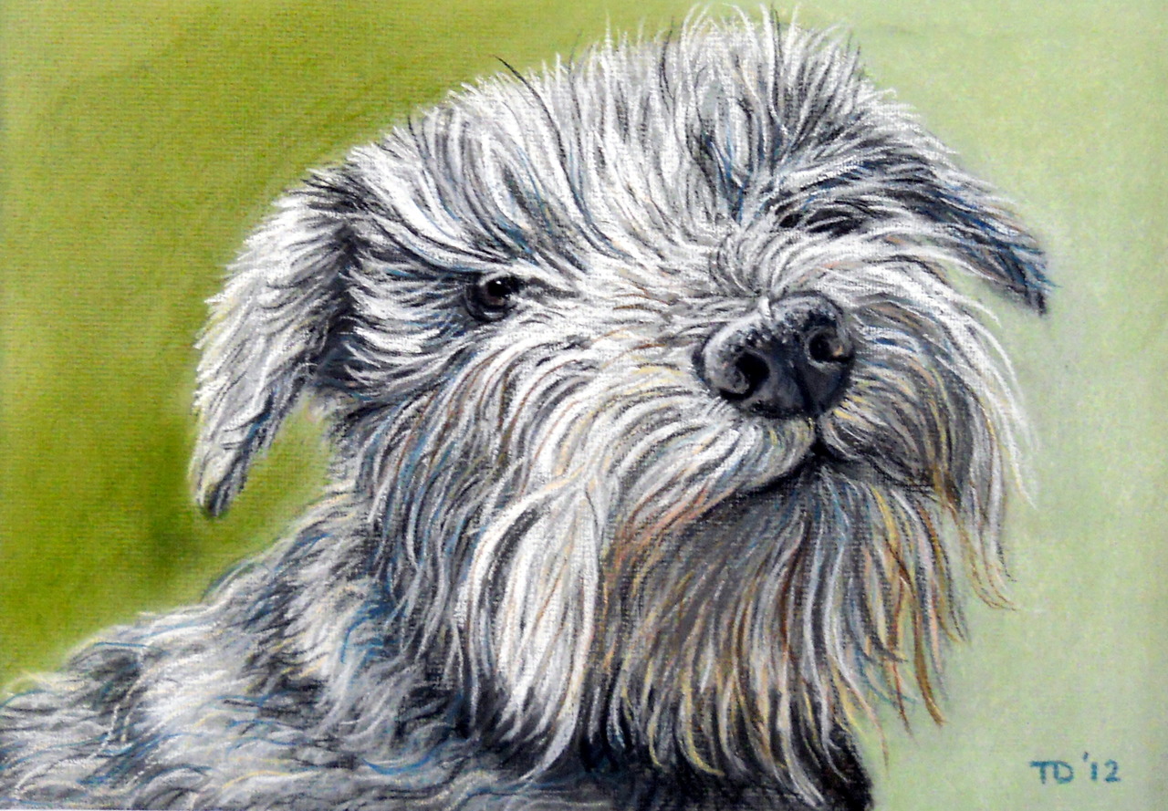 Grijs Groen Portret Pastel Hond Haar Schnauzer