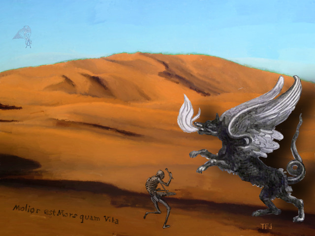 De indiaanse oude vrouw. Die op kerkhoven struinde met haar rozenkrans van botten. Terwijl de dood musiek maakt "metior est mors' quam vita" "De dood is beter dan het leven"