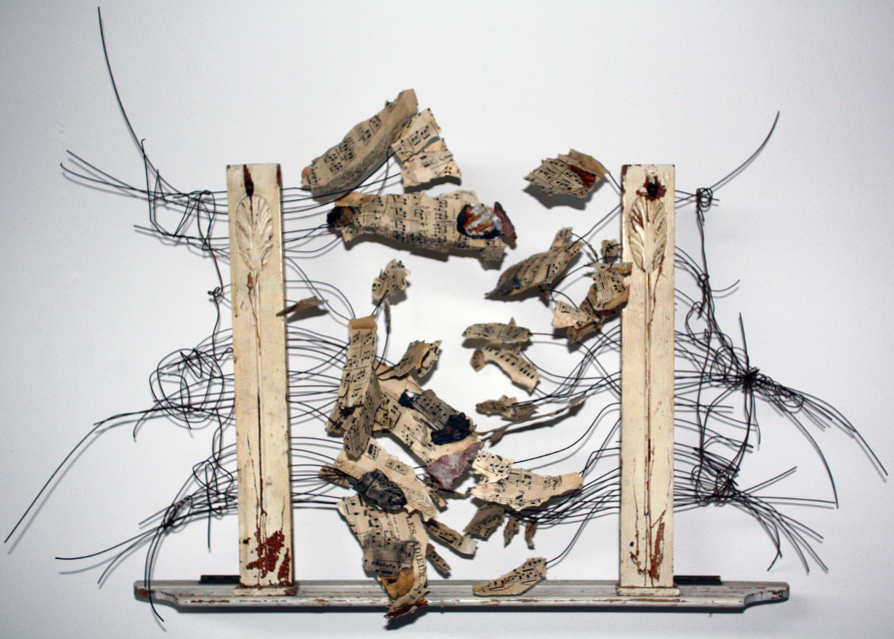 Piano-onderdelen, bladmuziek en piano-snaren Een protest tegen het cultuurbeleid van de laatste jaren in Nederland