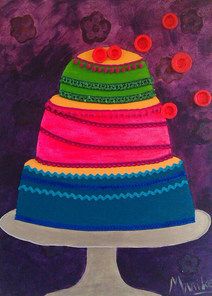Het werken met kleuren en diverse materialen boeit me en ik maak vooral plat werk. Het mooiste vind ik het om alledaagse elementen toe te voegen aan mijn werk. 'Keep it simple.'