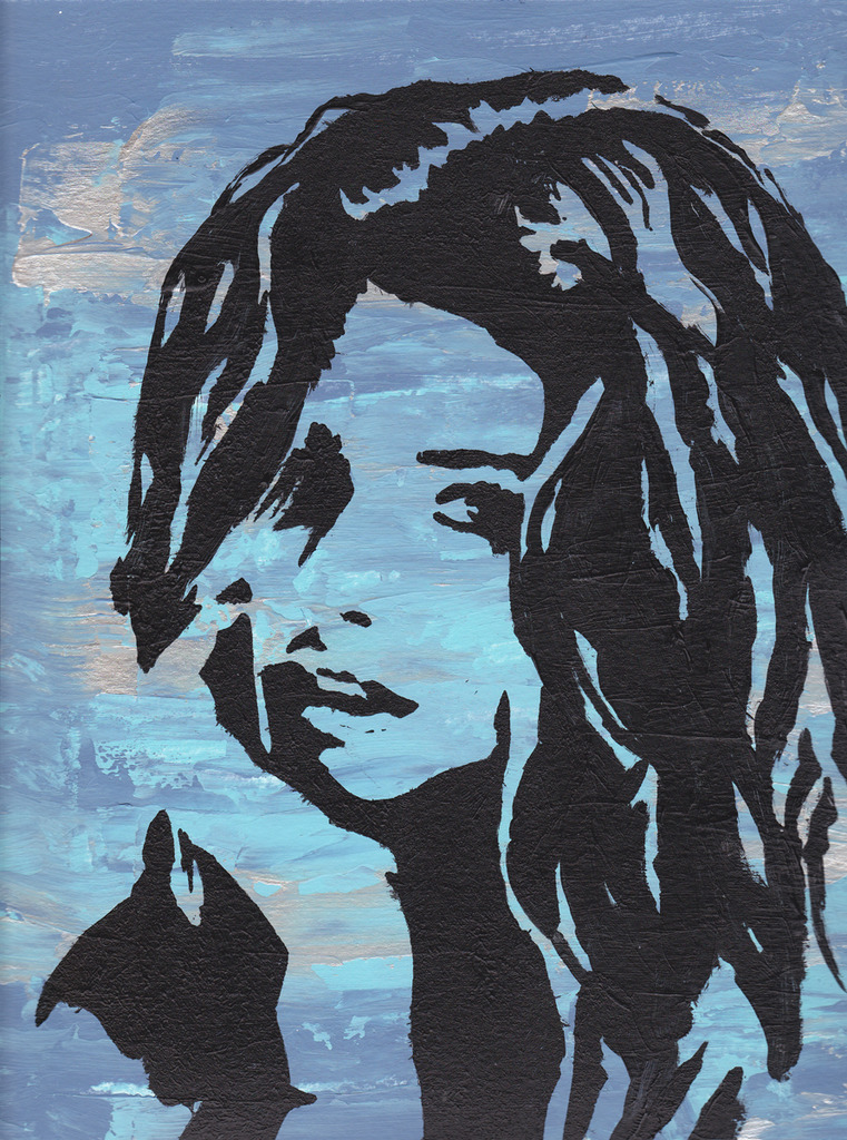 Acryl Papier Portret Blauw Zilver