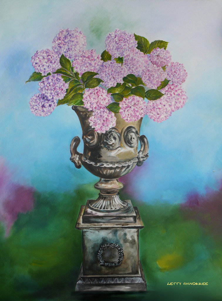 Hydrangea in antique pot