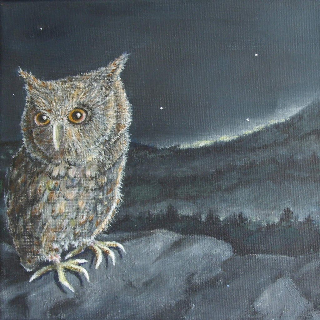 Nacht Uil Sterren Maanlicht Donker Grijs Acryl Dier