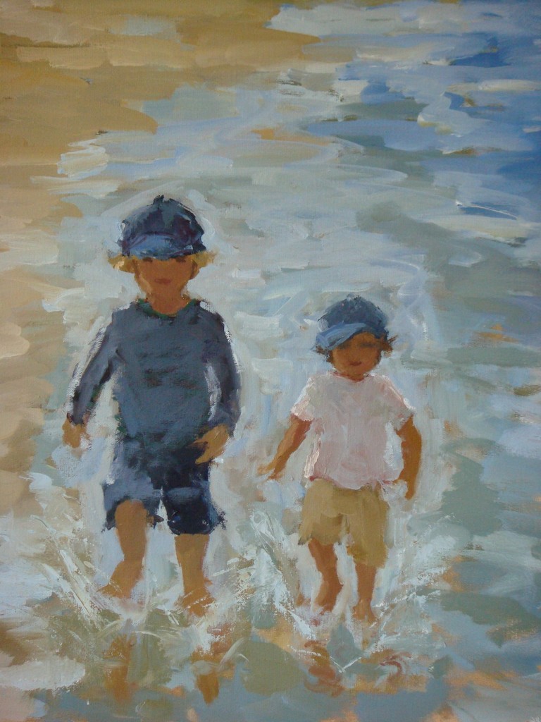Niet te koop.Jongetjes spetterend in de branding