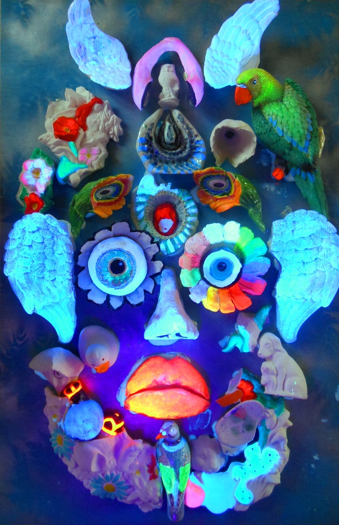 Portret Art Mixed Media Surrealistisch Gebroken Keramiek Uv Ceramics Blacklight Geëxplodeerd Recyclart