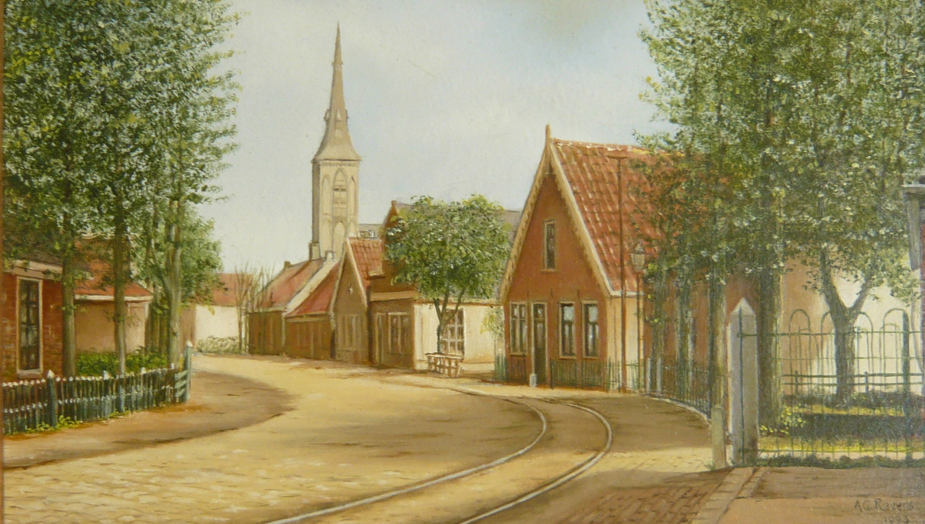 De Dorpsstraat in Castricum ter hoogte van de Cieweg. Rond 1900.