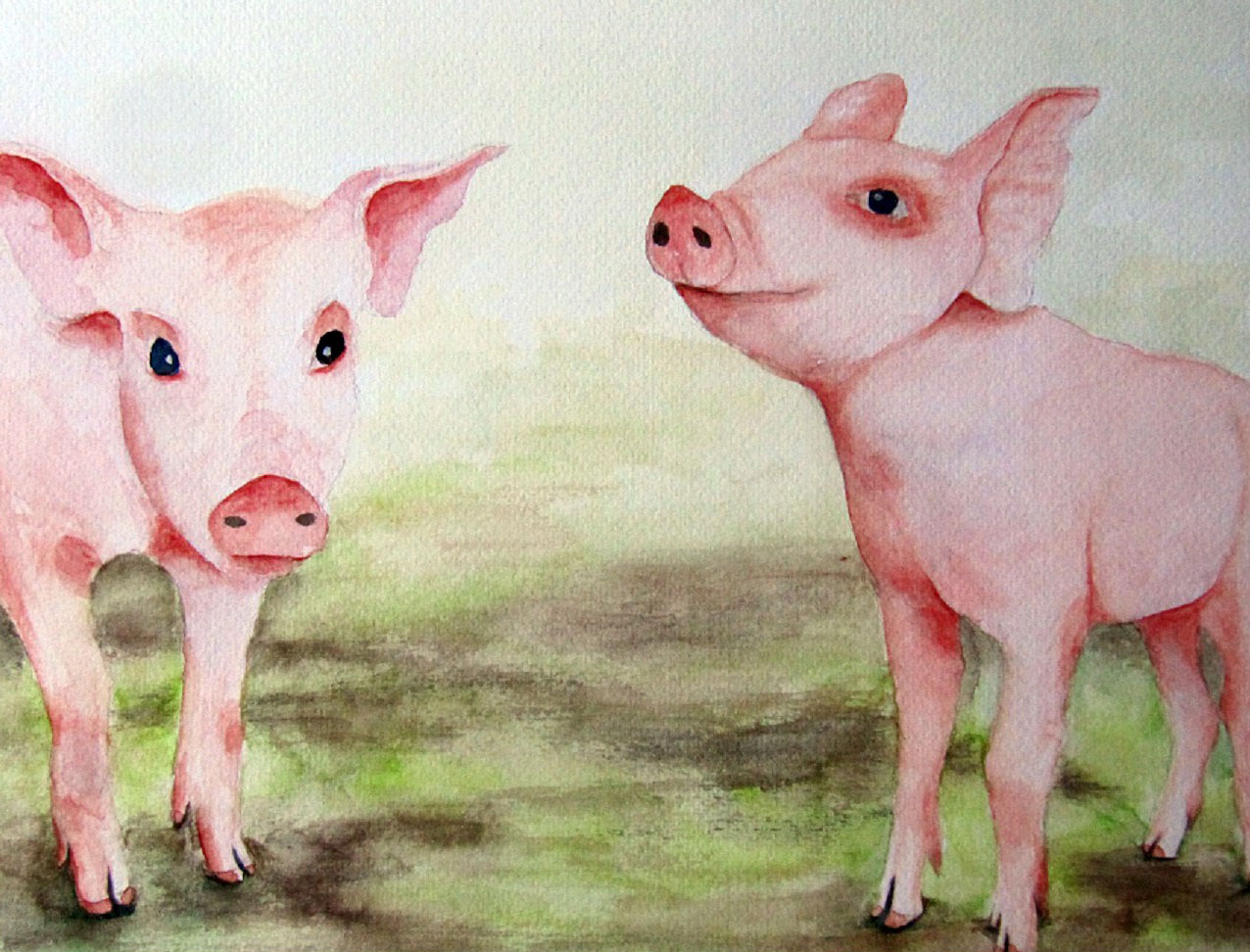 Aquarel Realistisch Big Varkens Biggen