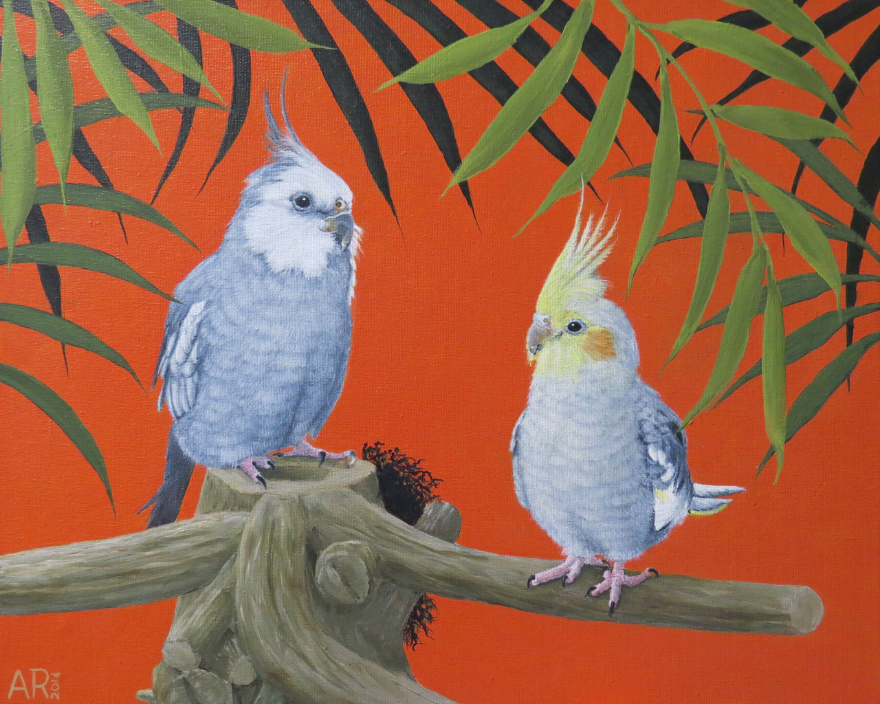 Schilderij Acryl Huisdieren Birds Vogels Huisdierportret Valkparkieten Cockatiel