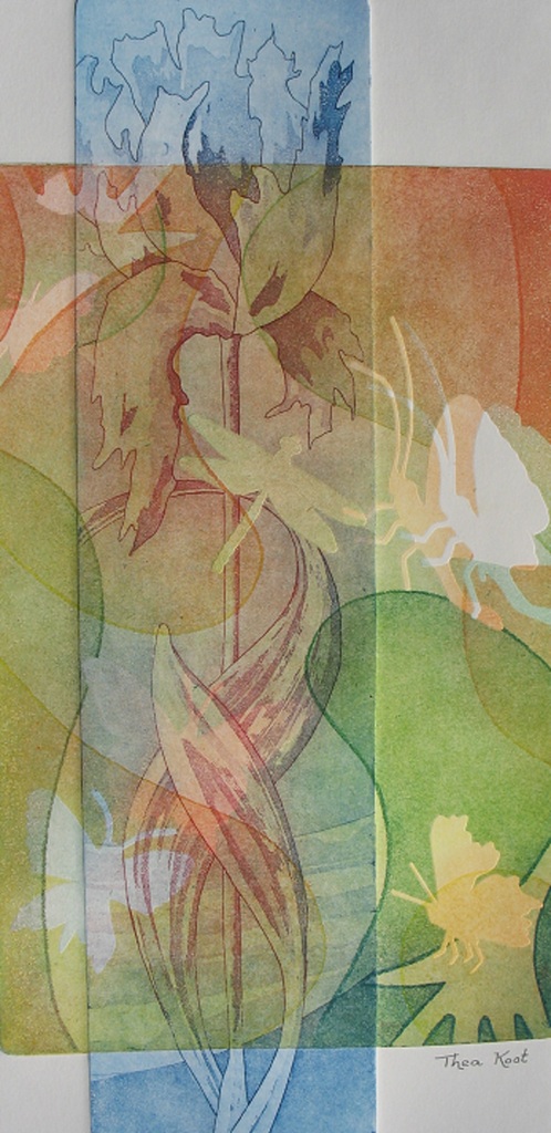 Aanvankelijk gestart als aquarelliste ben ik sinds 1996 geboeid door het etsen, een vorm van grafiek. De drie fasen die je doorloopt tot je een mooie afdruk hebt (ontwerp, etsplaat maken, afdrukken) geven je steeds weer een nieuwe uitdaging. Van het aquarelleren heb ik de veelkleurigheid overgehouden, die mijn etsen kenmerken: weinig afdrukken zijn bij mij hetzelfde. Experimenteren met vormen, kleuren en ander (af)drukmateriaal bieden nog een scala aan mogelijkheden om me verder te ontwikkelen. Sinds begin 2016 ben ik gedoken in de wereld van het glasfusen, De schijnbare hardheid van het glas, dat in feite een vloeistof is, boeit me mateloos en opent nieuwe werelden.