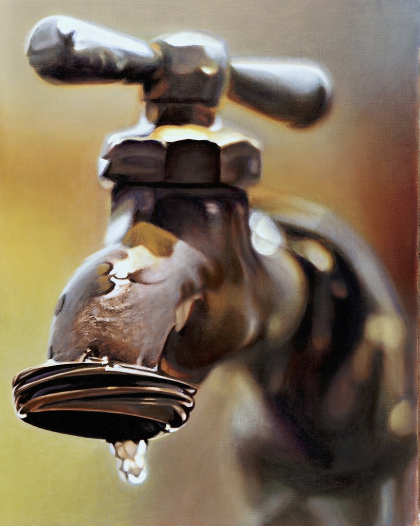 Figuratie Art Water Licht Druppel Object Kunst Oilpainting Olieverfschilderij Realisme Realism Paint Voorwerp Matter Conceptueel Future Fotorealisme Toekomst Contemporary Reflecties Kraan Dorst Dieptewerking After Hyperrealisme