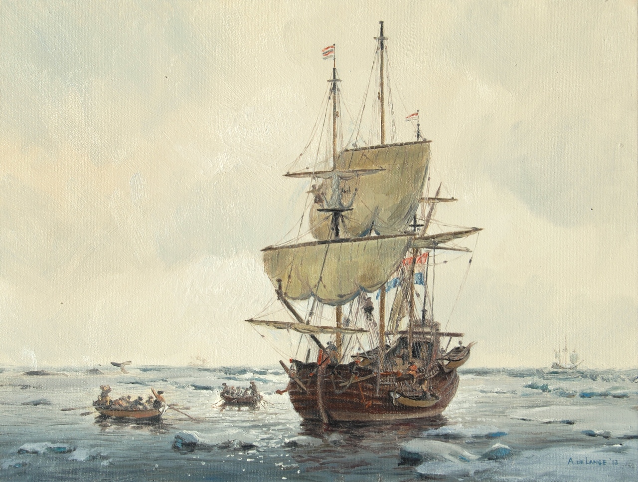 Hollandse walvisvaarder op jacht in het pakijs omstreeks 1690