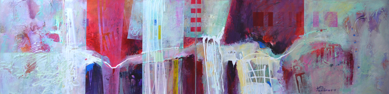 Mijn abstracte werk is een weerspiegeling van observaties en emoties die tot uitdrukking komen in kleuren, vormen en composities.