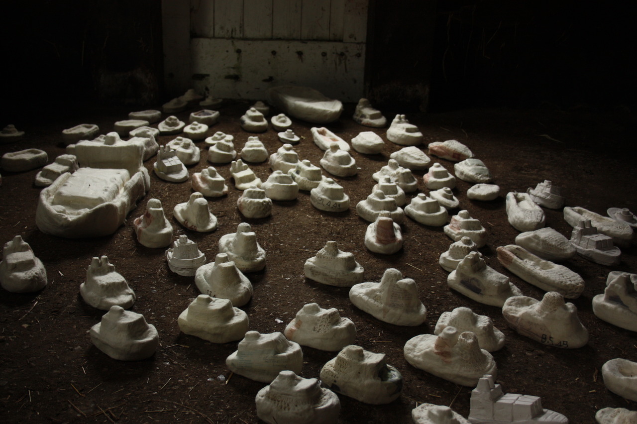 vilt, textiel, transfer, gips