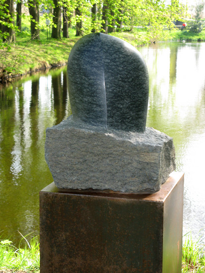 'Gestalte' is een groot stevig buitenbeeld van Diabas, een steen die gepolijst buiten kan staan.