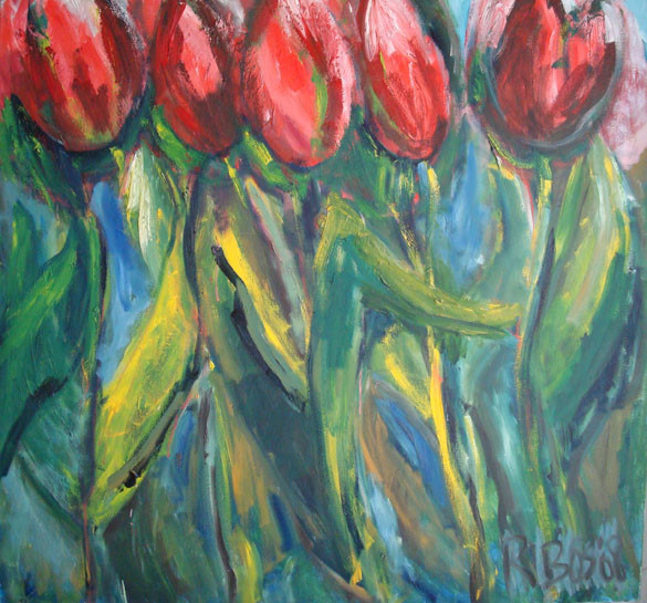 Tweeluik van rode tulpen