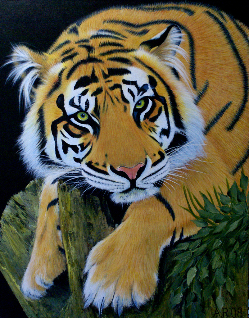 Schilderij Oranje Geel Zwart Acryl Yellow Groen Bruin Wildlife Dieren Africa Afrika Art Dier Natuur Painting Green Acrylic Black Brown Tijger Orange Wild Tiger Nature