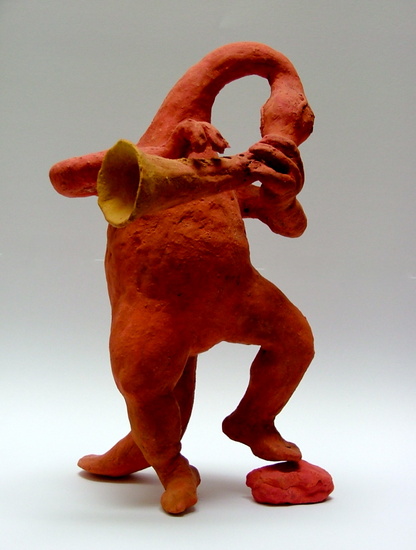 Oranje Dans Bruin Dier Klei Vrolijk Surreëel Muziek Keramiek Fluit