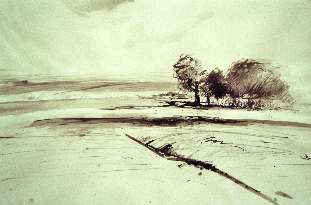 Landschap Weidsheid, inkt op papier. (verkocht)