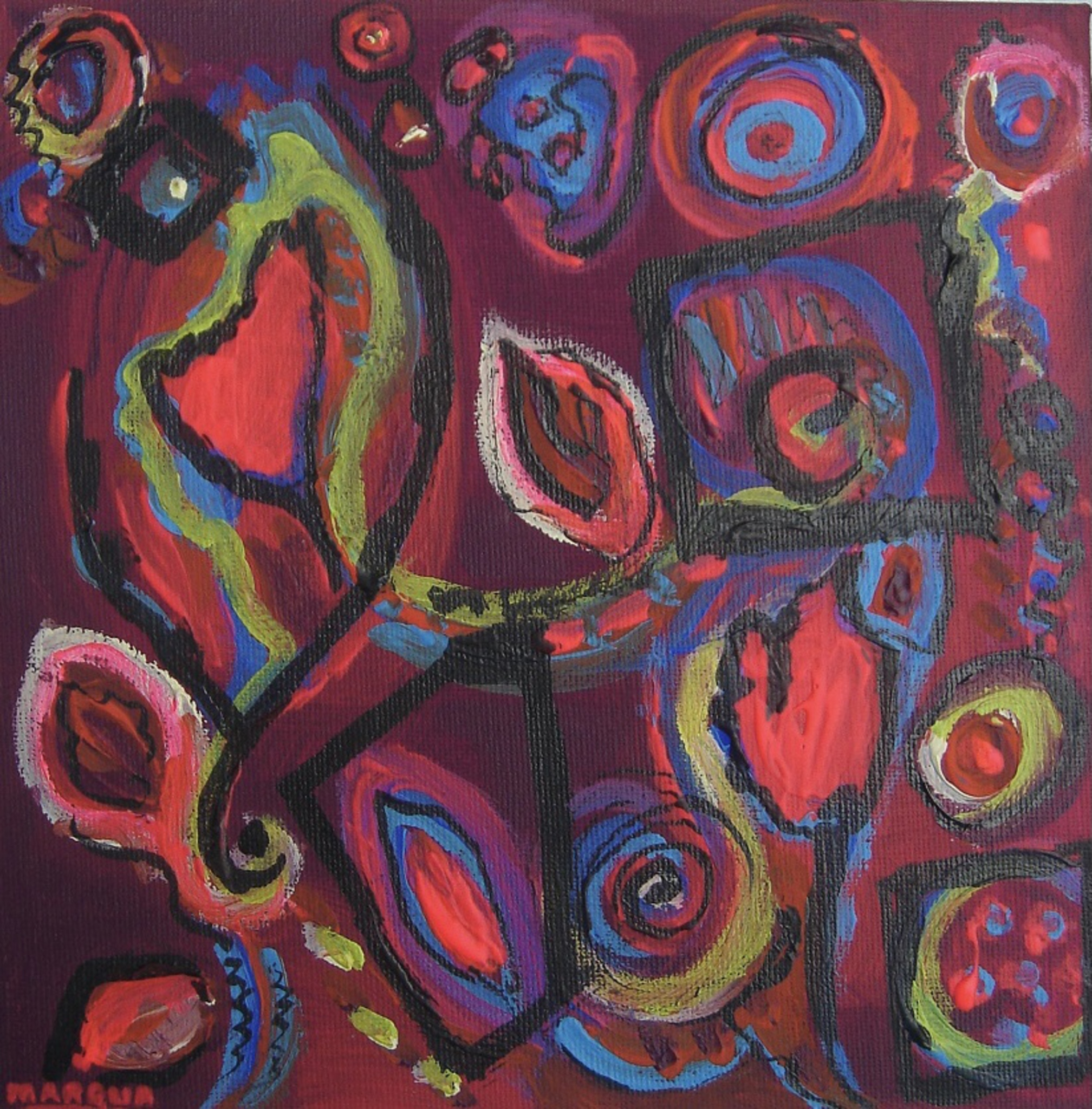 Bloemachtigen rose paars, geschilderd in acrylverf op "3-d" doek 20x20x4 cm. Kan eventueel als tweeluik worden gecombineerd met MARQUA314
