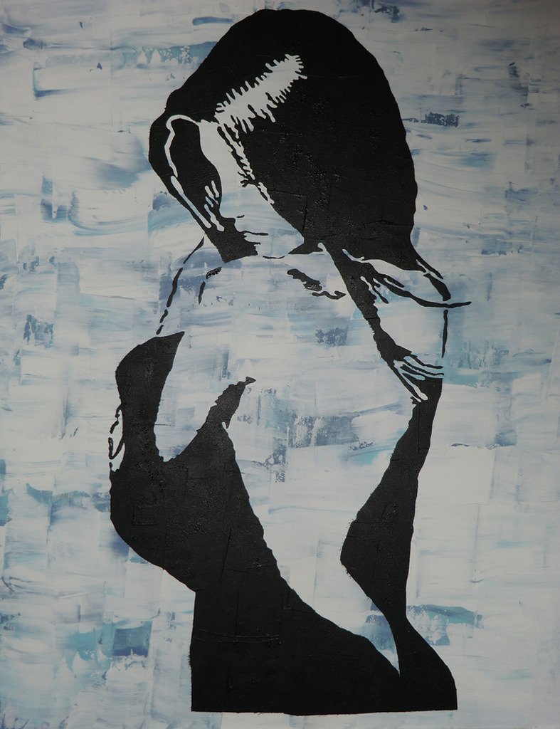 Acryl Paneel Vrouw Zwart Wit Blauw
