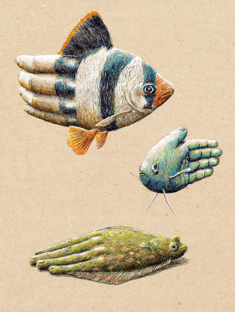 Redmer tekent een surrealistische en fantastische wereld. Ambachtelijk doorwerkte pentekeningen met veel arcering. Het werk is illustratief maar kan ook prima op zichzelf staan. Het bevat humor, een filosofische diepte en immer en altijd vervreemding. De kijker word aan het denken gezet over realiteit en werkelijkheid.