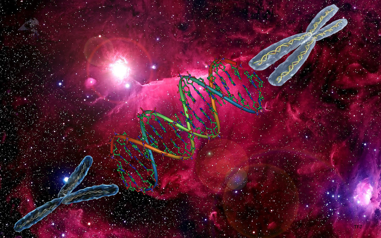Ondanks ieder mens verschillend is zijn we ook weer het zelfde. We bestaan allemaal uit 46 chromosomen X chromosomen en Y chromosomen. We bestaan allemaal uit DNA en cellen zo'n 65% uit water we hebben allemaal de zelfde bouwstoffen nodig. En toch is ieder mens weer verschillend kwa grote karakter enz. Is toch leuk om daar eens bij stil te staan. Dat we allemaal individuelen zijn en toch allemaal weer op molecule niveau weer het zelfde zijn. Daar heb ik dit schilderij over gemaakt. De achter grond van het schilderij is de ruimte daar me wil ik aan geven hoe klein we eigenlijk maar zijn. als je het van uit het perspectief van de ruimte bekijkt.