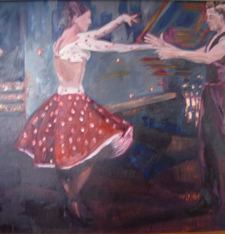 Meisje Expressie Dans Vrouw Man Beweging Olieverf Doek En Jongen Linnen Wedstrijd Rok Zwierig Danspaar