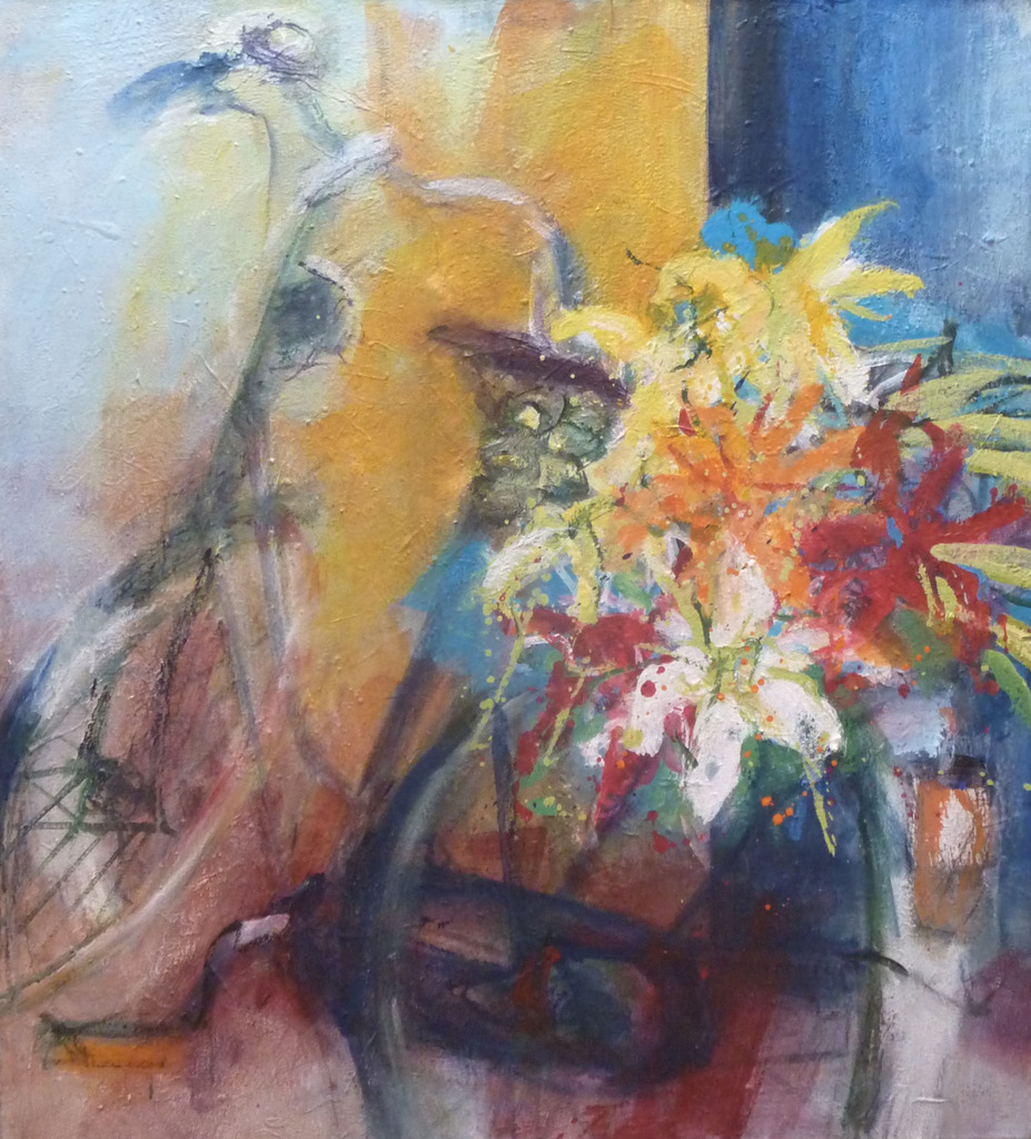 Heftige verfstreken en kleur zoeken naar evenwicht.Weergave van de realiteit is hierbij niet het belangrijkste.Veeleer het weergeven van een stemming.