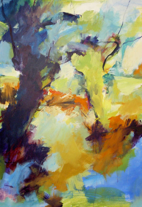 Heftige verfstreken en kleur zoeken naar evenwicht.Weergave van de realiteit is hierbij niet het belangrijkste.Veeleer het weergeven van een stemming.