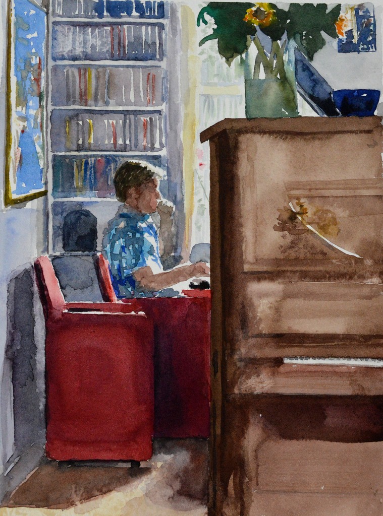 Licht Aquarel Realistisch Piano Sfeervol Interieur Kamer