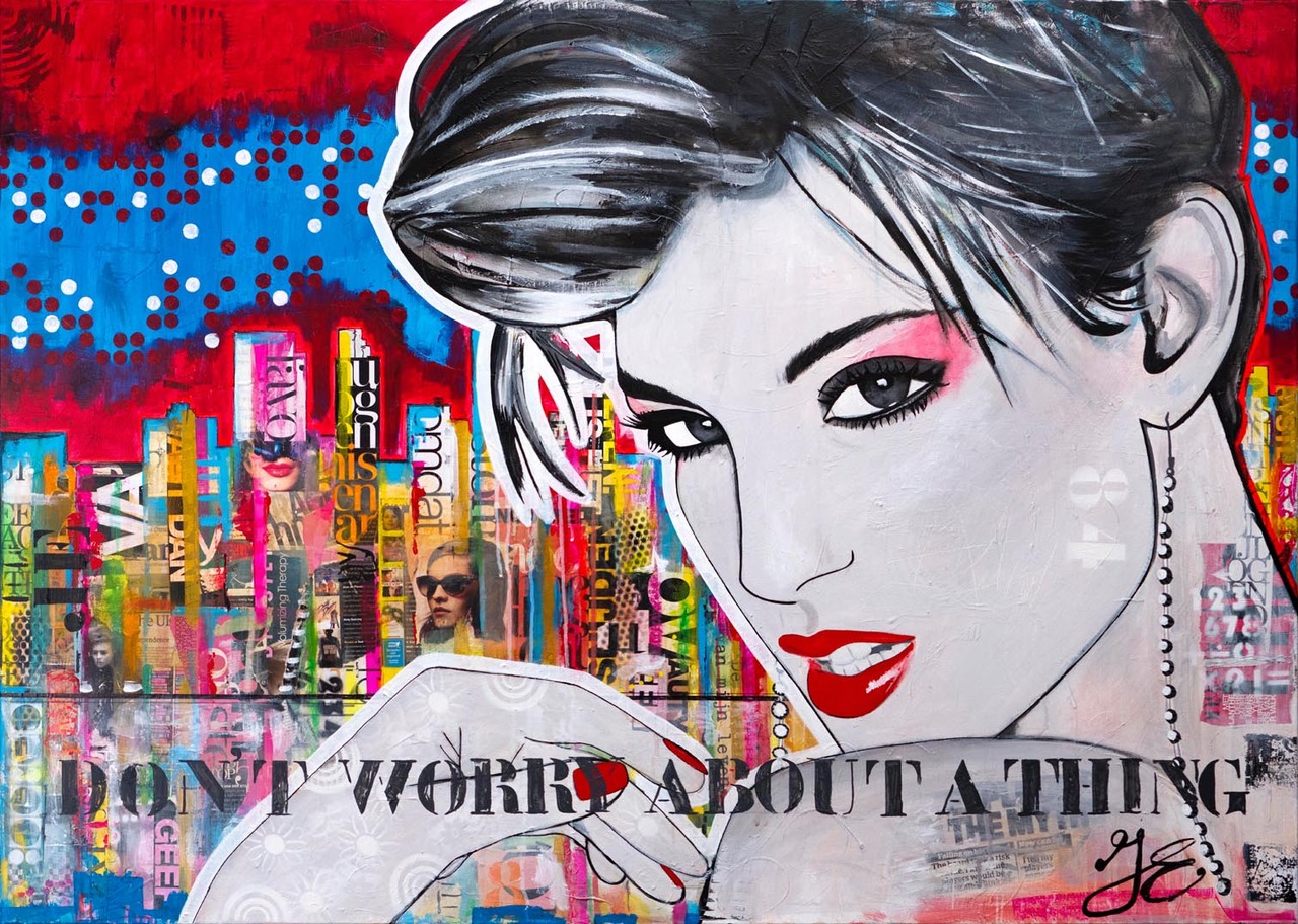Janet Edens (1971, autodidact) maakt moderne schilderijen, portretten en kunst geboortekaarten geïnspireerd door streetart, retro patronen, graffiti, pop art, typografie en grafische vormen.