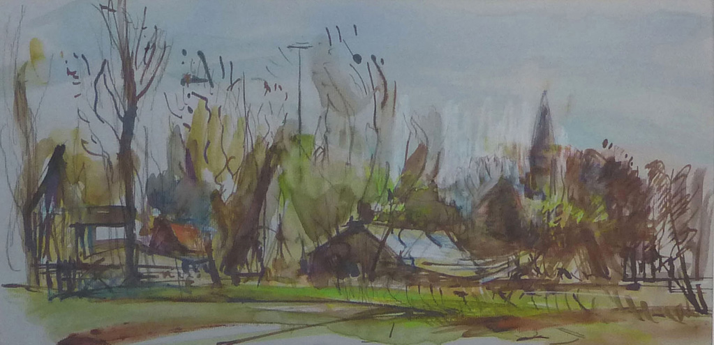 Aquarel Watercolour Brown Ink Church Kerk Huizen Houses Tipi Tents