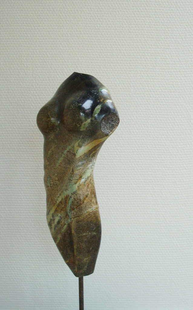 serpentijn ( fruitstone) op hoge pin en boog van cortenstaal