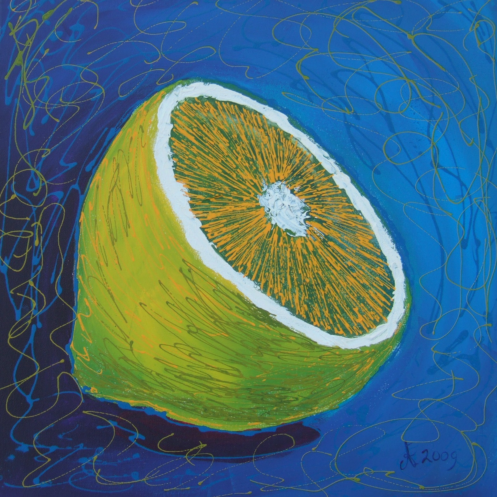 Schilderij Acryl Decoratief Citroen Lemon Verfkriebels
