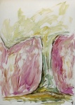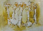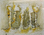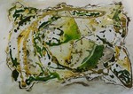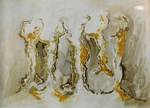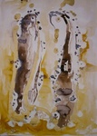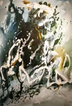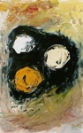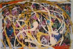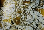 Ronde vormen over een drukke ondergrond. 50x70 cm