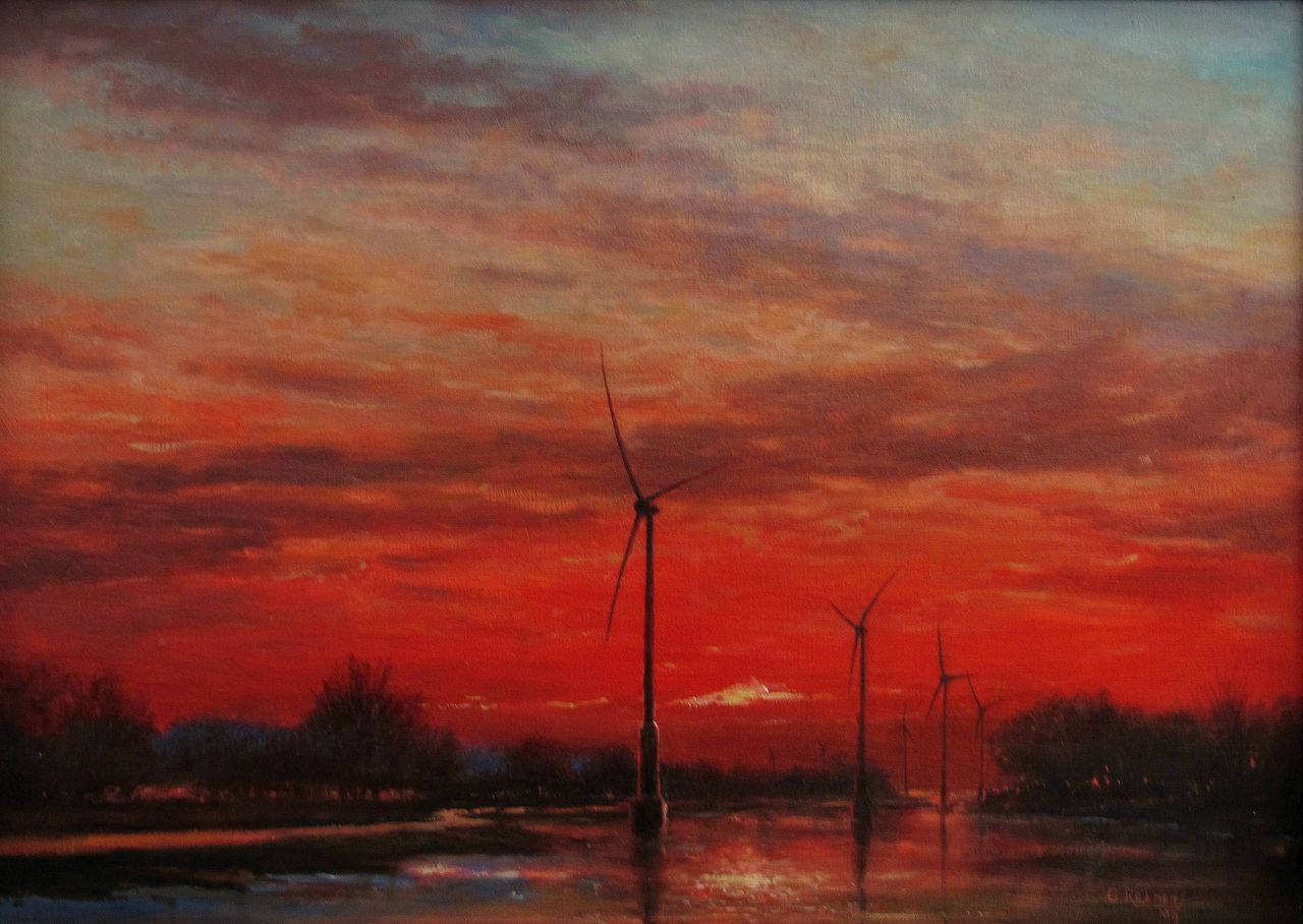 Rood Red Avond Windmolens Evening Windmills