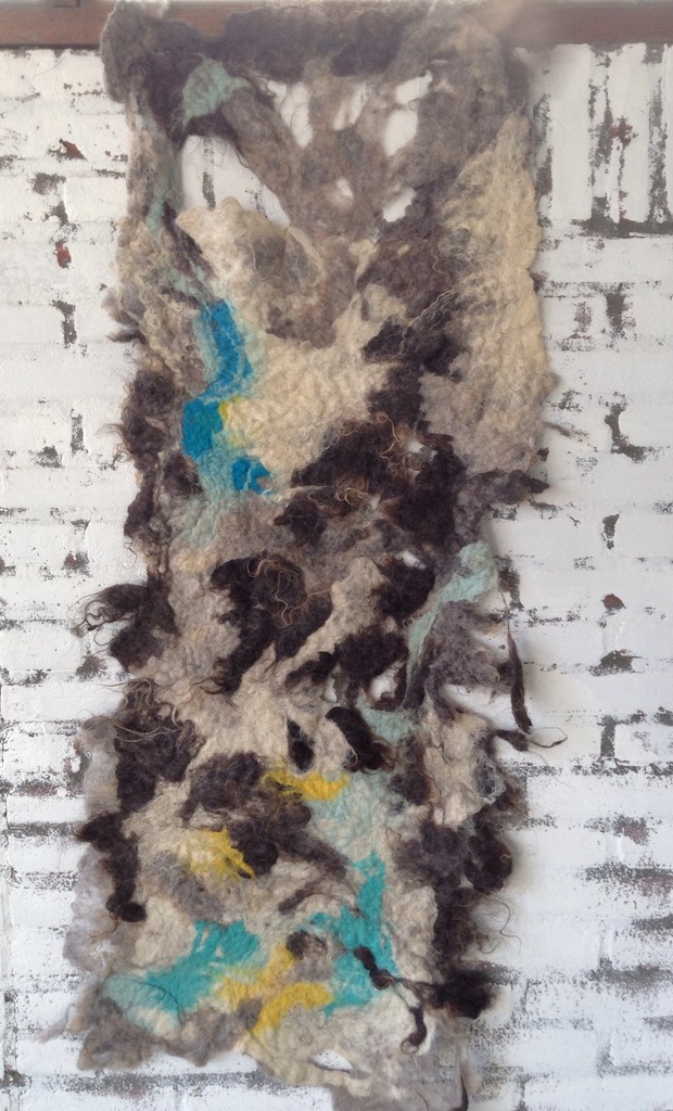 wandobject van vilt recht uit de vacht gecombineerd met gekleurd merino vilt