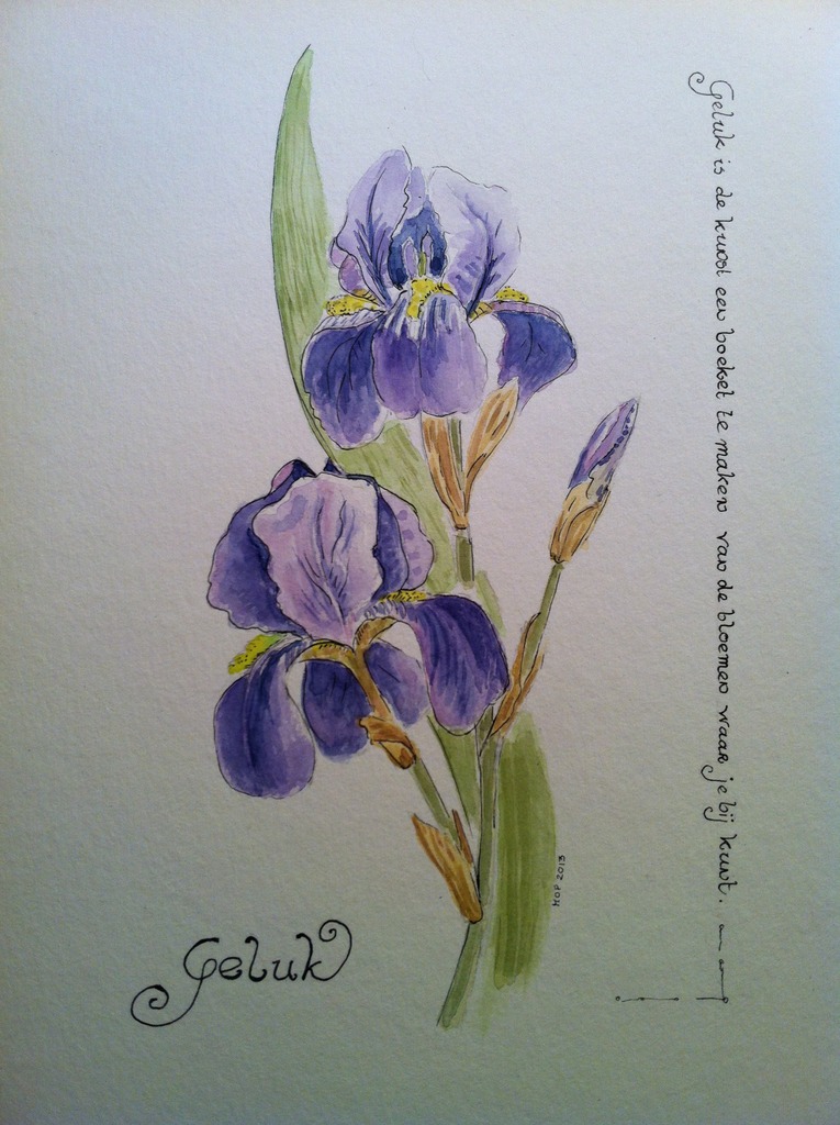Blauw Bloemen Aquarel Iris Voorjaar Arts & Waterbloem Mop Flowesr