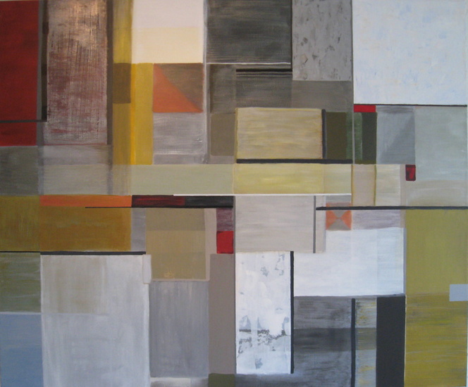 Acryl Kleuren Gemengde Techniek Doek Lijnen Vlakken Vakken