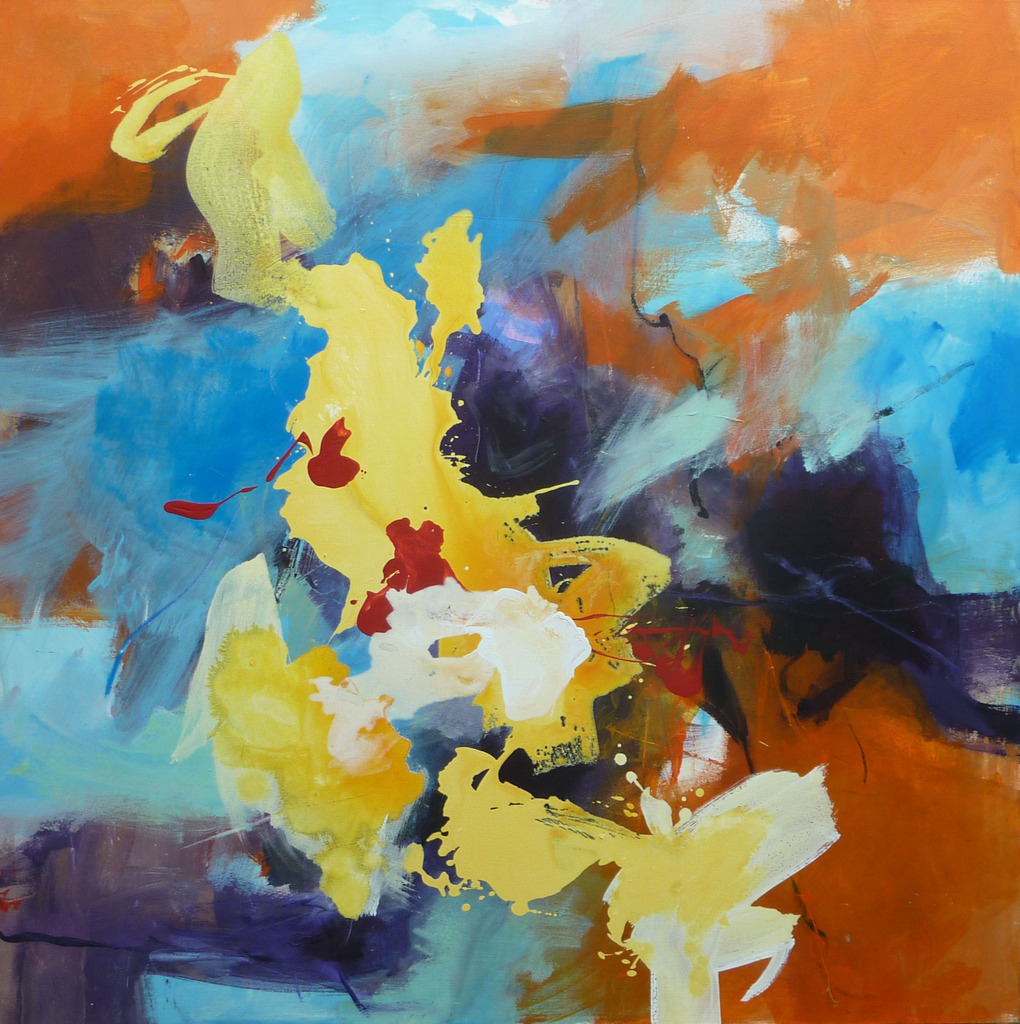 Heftige verfstreken en kleur zoeken naar evenwicht.Weergave van de realiteit is hierbij niet het belangrijkste.Veeleer het weergeven van een stemming.