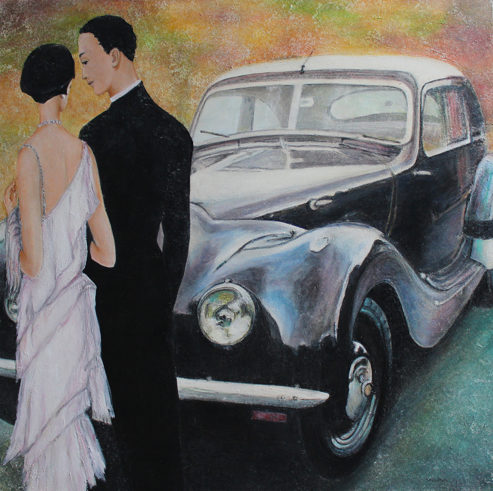 Bruin Realistisch Auto Car People Retro Oldtimer Mixmedia