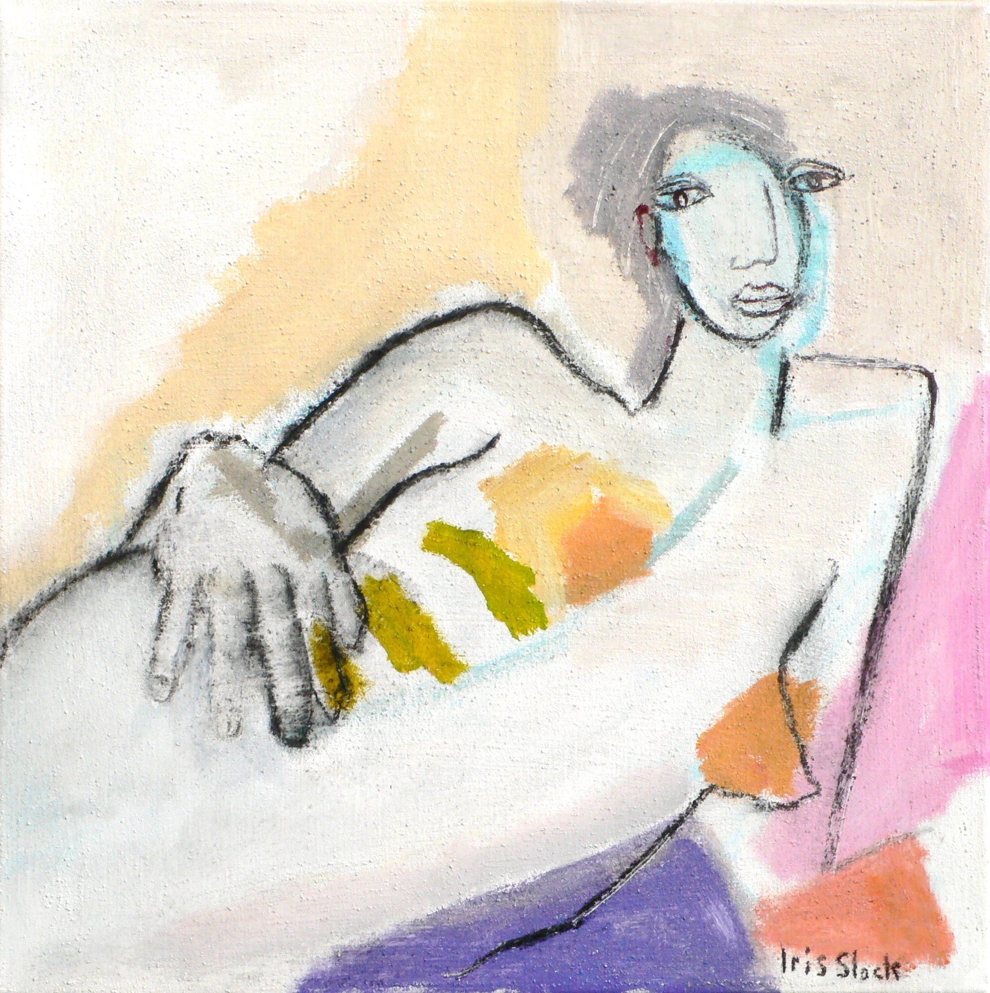 Schilderij Meisje Pastelkleuren Painting Pastel Girl Liggend Colours To Down Lie
