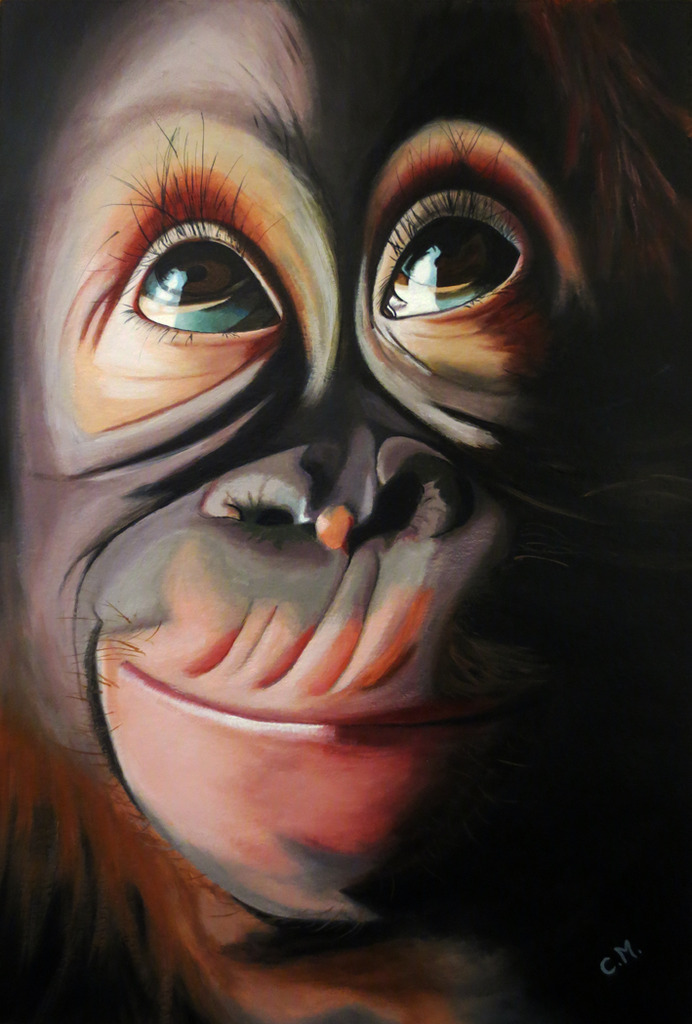 orang-oetan aapje dat goed kijkt en diep nadenkt alvorens te handelen K.