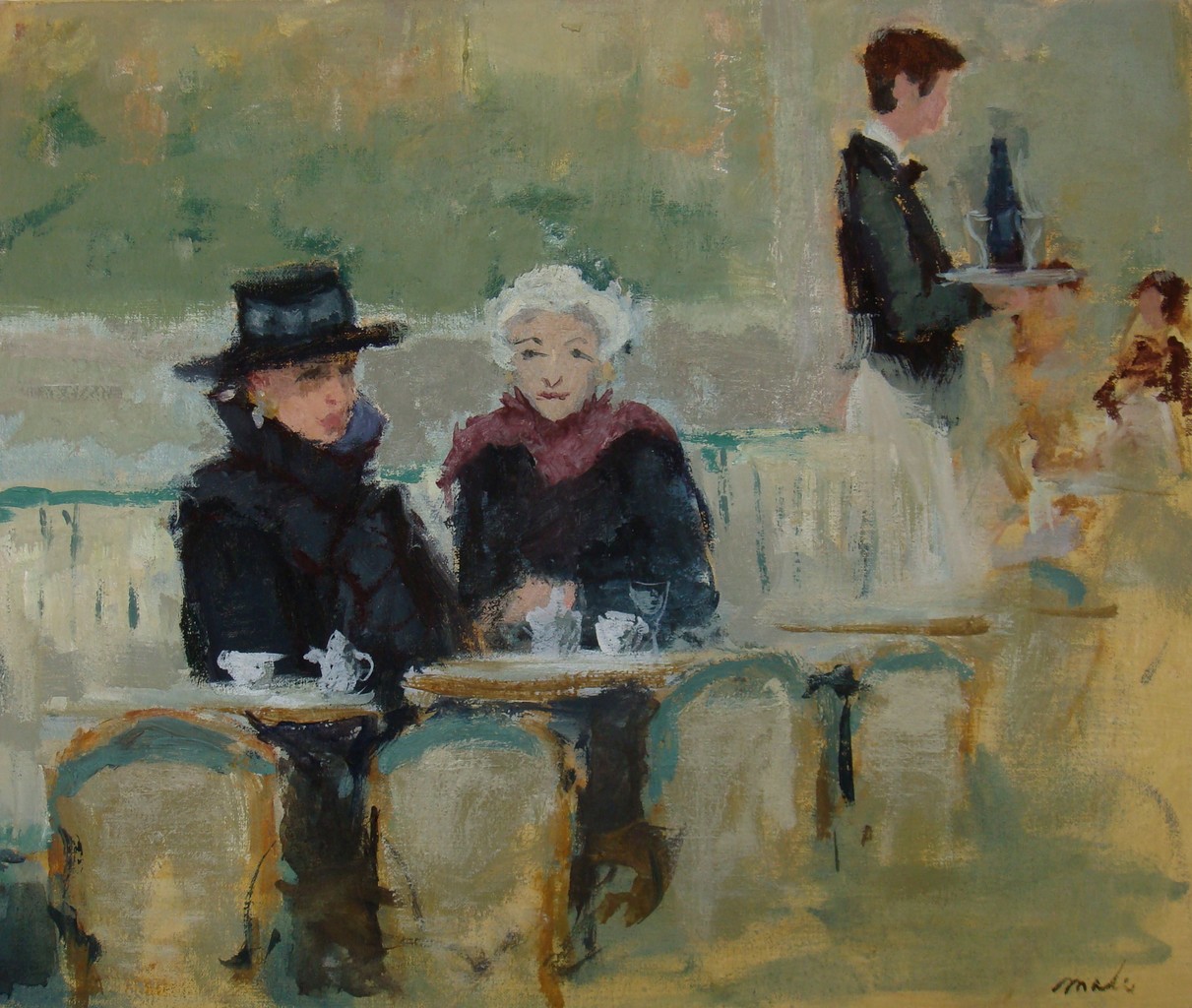 Verkocht.Twee.dames aan de thee in Les Deux Magots in Parijs.