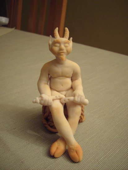 het dromende faun staandbeeld in polymeer klei +/- 12 cm groot
